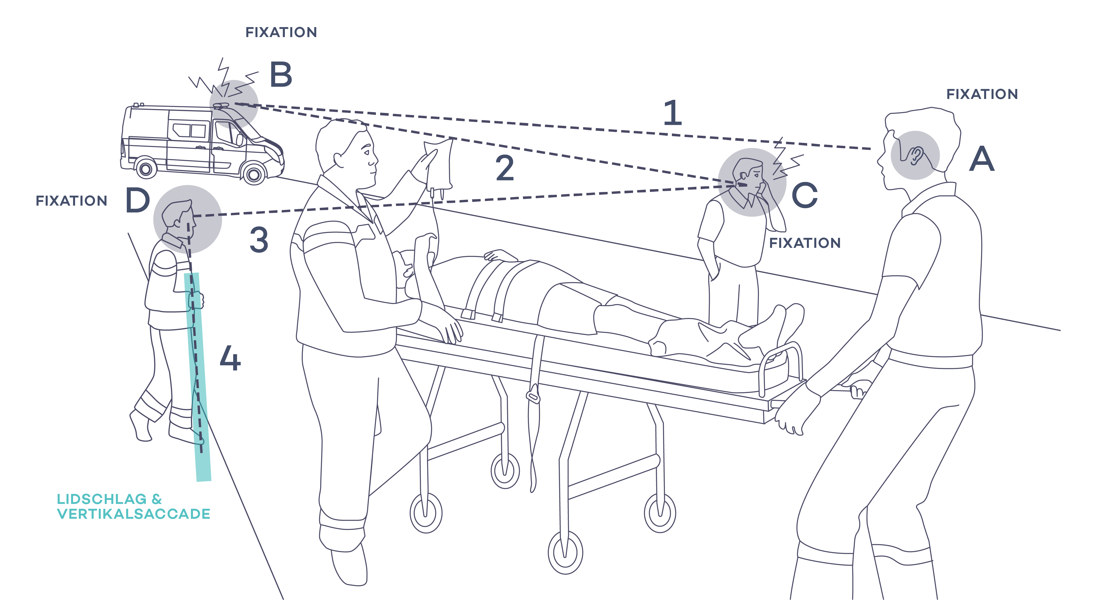 In complex, stressful situations, untrained and uncontrolled eye scanning often leads to frequent blinking and rapid eye movements – resulting in so-called blind spots, where no information is processed.