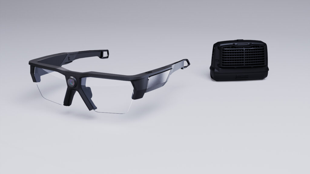 - Lite Unit: The system features a compact 95 g computing unit with full connectivity (WiFi, mobile data, Bluetooth) that connects to the glasses via cable. It can be carried in a pocket or mounted on a helmet, arm, or belt.